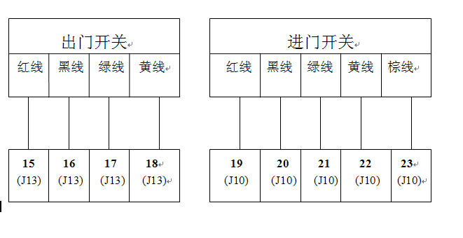 整個系統(tǒng)有控制器、專用鎖具、電源、進門開關(guān)、出門開關(guān),喇叭組成,如果需要廣告燈光控制、通風設(shè)備控制、補光設(shè)備控制功能則還需增加相應(yīng)的控制繼電器,如果需要使用時間限制功能還需要安裝繼續(xù)按鈕。