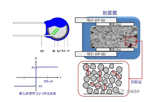組成壓敏電阻的材料類型比較多,常見(jiàn)的有氧化鋅壓敏電阻,碳化硅壓敏電阻,氧化鈦壓敏電阻和鈦酸鋇壓敏電阻。氧化鋅壓敏電阻的主體材料是二價(jià)元素鋅和六價(jià)元素氧。因此,壓敏電阻經(jīng)常被簡(jiǎn)稱為MOV,金屬氧化物壓敏電阻。