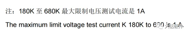在音特電子規(guī)格書中還單獨(dú)對(duì)該電流進(jìn)行了說(shuō)明,其他器件所使用的電流為5A,但是對(duì)于180K~680K型號(hào)的器件最大限制電壓改為1A。而在君耀電子的規(guī)格書中, 每個(gè)最大鉗位電壓會(huì)有一個(gè)對(duì)應(yīng)的施加電流值。