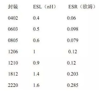 電容的等效串聯(lián)電感和生產(chǎn)工藝和封裝尺寸有關(guān),同一個廠家的同種封裝尺寸的電容, 其等效串聯(lián)電感基本相同。通常小封裝的電容等效串聯(lián)電感更低,寬體封裝的電容比窄體封 裝的電容有更低的等效串聯(lián)電感。