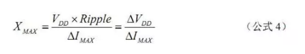 如果希望電源系統(tǒng)在 500MHz 以下時都能滿足電壓波動要求,就必須控制電容的 寄生電感。必須滿足 2πf×Lmax≤XMAX ,所以有: