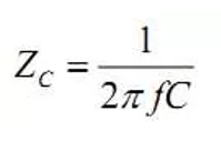 當頻率處于電容自諧振點以下時,電容的阻抗可近似表示為: