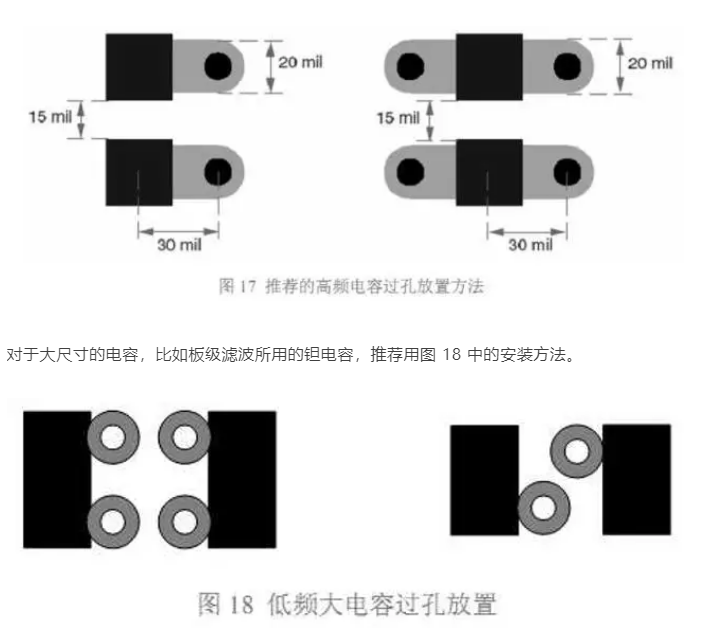 放置過孔的基本原則就是讓這一環(huán)路面積最小,進而使總的寄生電感最小。圖 16 顯示 了幾種過孔放置方法。