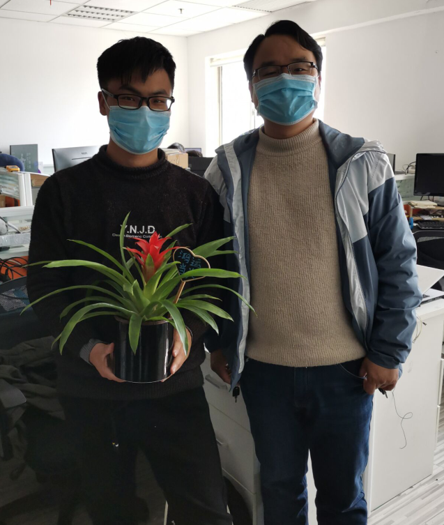 公司特意準(zhǔn)備了一盆鮮花寓意著“紅日當(dāng)頭”!