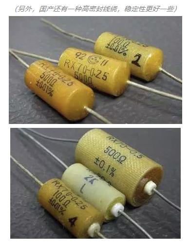 ⑦ 全密封線繞:電阻絲材料同上,但采用金屬殼密封(引線是后焊接的)完全杜絕了潮濕和氧化因此穩(wěn)定性很高,達到8ppm/年左右,溫度系數(shù)也大多在1ppm/℃之內(nèi),廣泛用于老一代高等級計量儀器和標準電阻中,我有一篇專門的文章做過詳細介紹。二手價格大約50元/只。