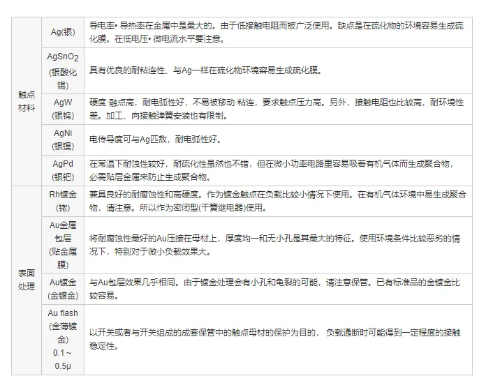 在大功率場景下,觸點(diǎn)粘連往往是決定繼電器壽命的關(guān)鍵因素,但沖擊電流、反向電壓不可避免時(shí)。更關(guān)鍵的是,考量繼電器觸點(diǎn)材料的耐粘連性能,如下為觸點(diǎn)材料的特征??梢?,AgSnO2的觸點(diǎn)材料具有優(yōu)良的耐粘連性,而該材料和表面處理工藝的技術(shù)處理,就看各大廠商的工藝技術(shù)了。