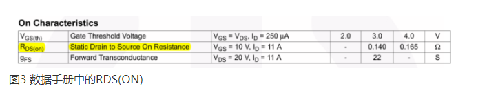 在MOSFET的數(shù)據(jù)手冊(cè)中,可以找到RDS(ON)值的定義和范圍,如下圖所示:
