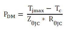 其中Tjmax為最大結(jié)溫,TC為殼溫,RθJC為穩(wěn)態(tài)熱阻,這三個(gè)值在數(shù)據(jù)手冊(cè)中都可以查到。