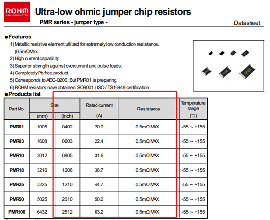 如果是更大的電流,也是電阻可選的。不過,這些電阻就不常規(guī)了,比如這個(gè)羅姆的超低阻值電阻,最大阻值0.5mΩ,小了100倍,額定電流更是達(dá)到了20A+,但是價(jià)格比較貴,要好幾毛錢,而普通電阻一分錢能買好幾個(gè)。