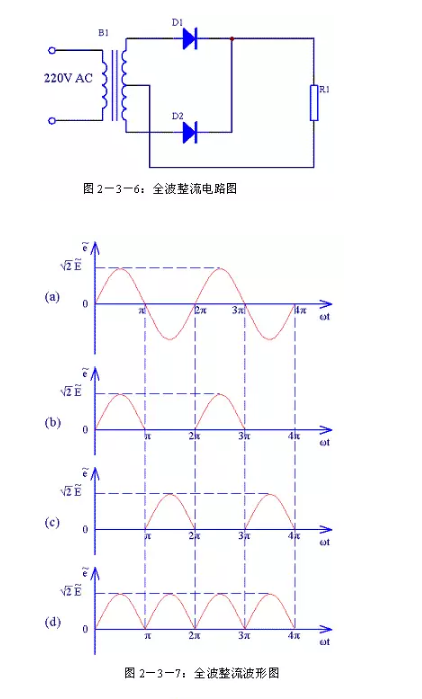 全波整流電路每個整流二極管上流過的電流只是負(fù)載電流的一半,比半波整流小一倍。