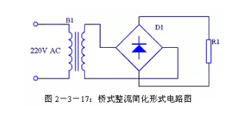 橋式整流電路每個整流二極管上流過的電流是負(fù)載電流的一半,與全波整流相同。通常情況下橋式整流電路都簡化成圖2-3-17的形式。