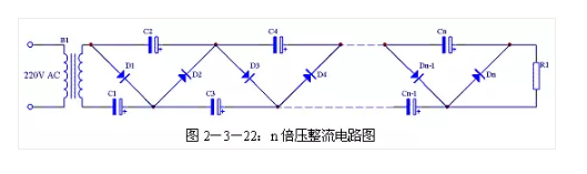 二倍壓電路還可以很容易的擴(kuò)展為n倍壓電路,具體電路見圖2-3-22。