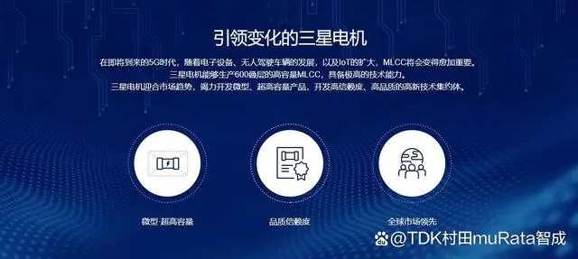 三星電機(jī)成立時(shí),基于生產(chǎn)Audio/Video部件,為大韓民國(guó)部件產(chǎn)品的自主技術(shù)奠定堅(jiān)實(shí)的基礎(chǔ),在上世紀(jì)1980年代將業(yè)務(wù)領(lǐng)域擴(kuò)大到材料及計(jì)算機(jī)部件,在1990年代致力于開發(fā)芯片元件、移動(dòng)通信元件、光元件等下一代有望新產(chǎn)品。以下內(nèi)容是深圳智成電子整理,智成是一家TDK和村田代理商喜歡的點(diǎn)點(diǎn)關(guān)注,免費(fèi)領(lǐng)取TDK村田三星樣品。