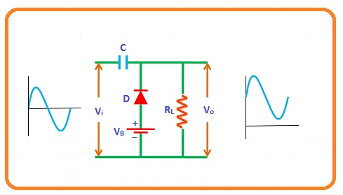 鉗位電路也稱為直流電阻,主要功能是將一些直流電平添加到輸入交流信號(hào)中。下圖中顯示了鉗位電路,它在輸入交流信號(hào)中添加了一個(gè)正直流電平。