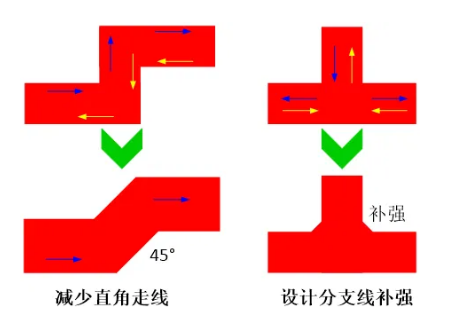 反射: 由于布線的彎角、分支太多造成傳輸線上阻抗不匹配,可以通過減少線路上的彎角及分支線或者避免直角走線及分支線補強來進行改善。