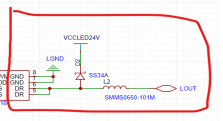 實(shí)際現(xiàn)場測試,輻射較大,且在L2和LED1之間或者在LED1接24V電源腳旁加220UF-100NF電容,對(duì)輻射消除,幾乎無作用