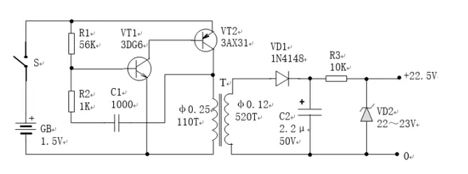 如圖所示是一種輸出電壓可達(dá)22.5 V的直流升壓器電路,可用來(lái)代替22.5 V的疊層電池。
